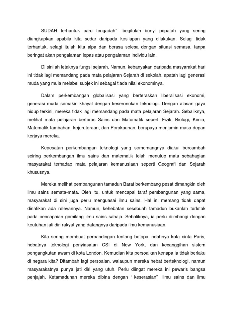 BM - Peribahasa 36 Hendak belajar berenang dapatkan itik hendak belajar memanjat dapatkan tupai BM - Peribahasa 65 Sudah terhantuk baru tengadah BM - Peribahasa 28 Seperti lintah menghisap darah. Dia juga lalai ketika membuat sesuatu menyebabkan dia sering dimarahi oleh ibunya. Panjang karangan anda hendaklah melebihi 350 patah perkataan.