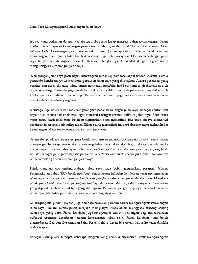 Contoh Karangan Punca-punca Kemalangan Jalan Raya.