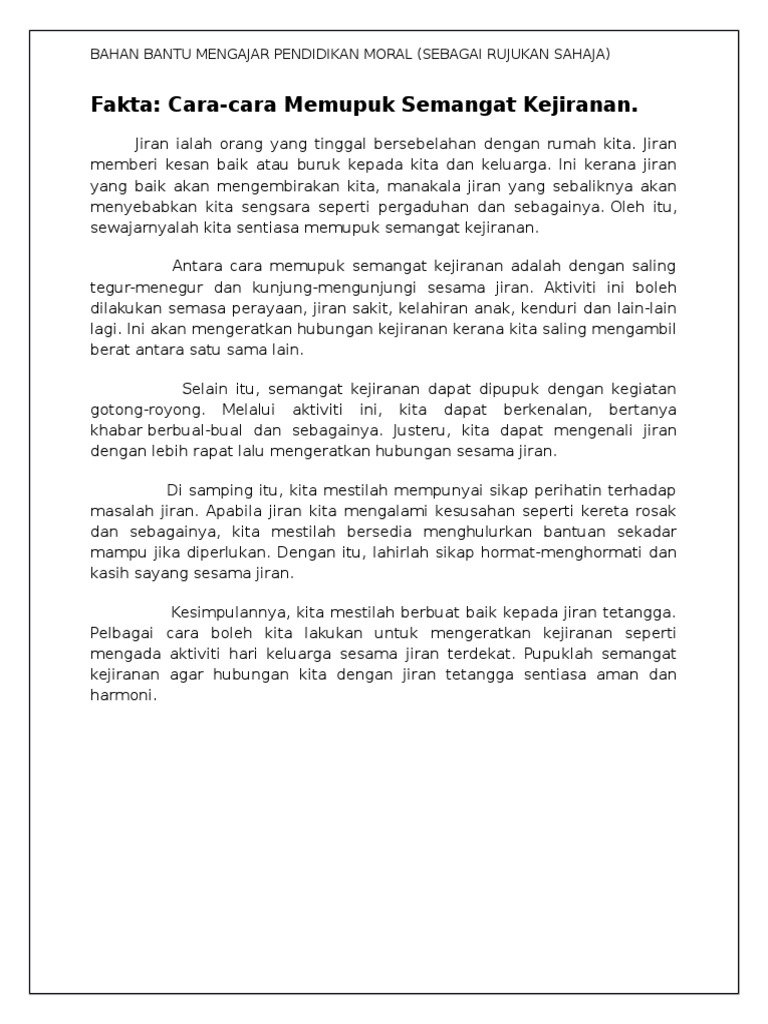 Cara Memupuk Semangat Kejiranan. Selain itu budaya ziarah-menziarahi juga mampu memupuk semangat kejiranan. KERTAS 2 BAHASA MELAYU SPM NOV 2001- JUN 2013 SPM.