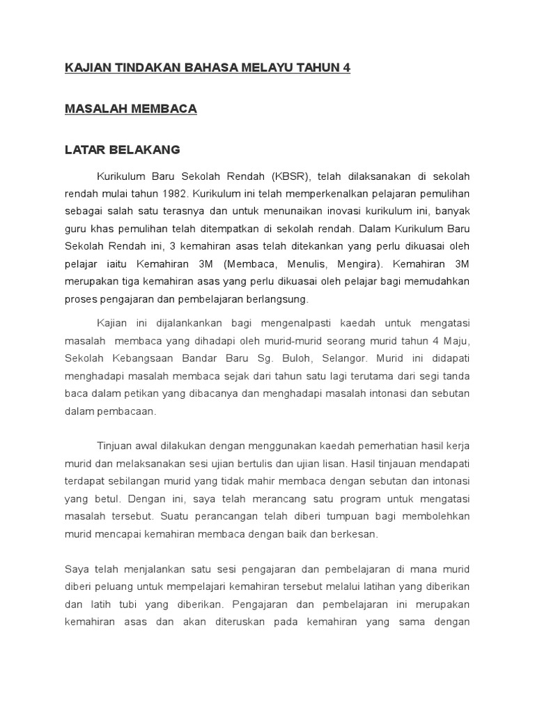 Kajian Tindakan Bahasa Melayu Tahun 4 Pdf