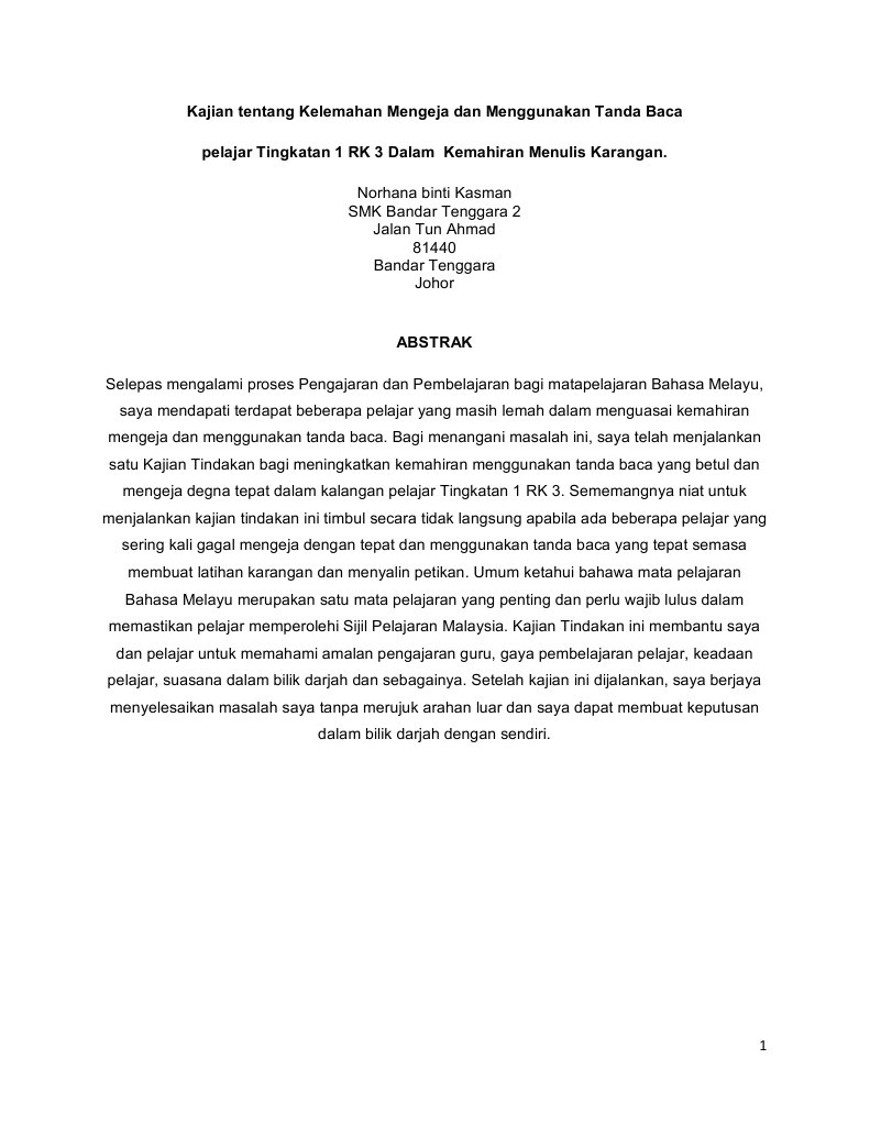 Doc Contoh Kajian Tindakan Masalah Penulisan Shamil Aiman Academia Edu