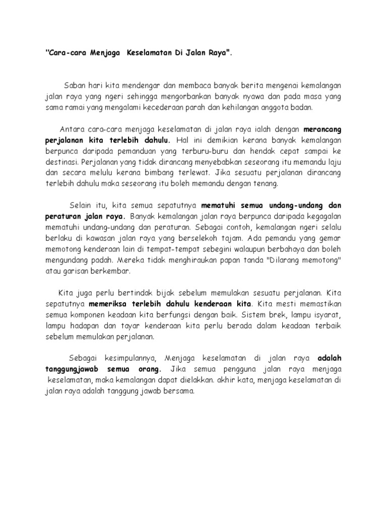 Panjangnya huraian hendaklah antara 150 hingga 200 patah perkataan. Kalau betul ya maka anda semua berada di web yang tepat. A Keselamatan jalan raya.