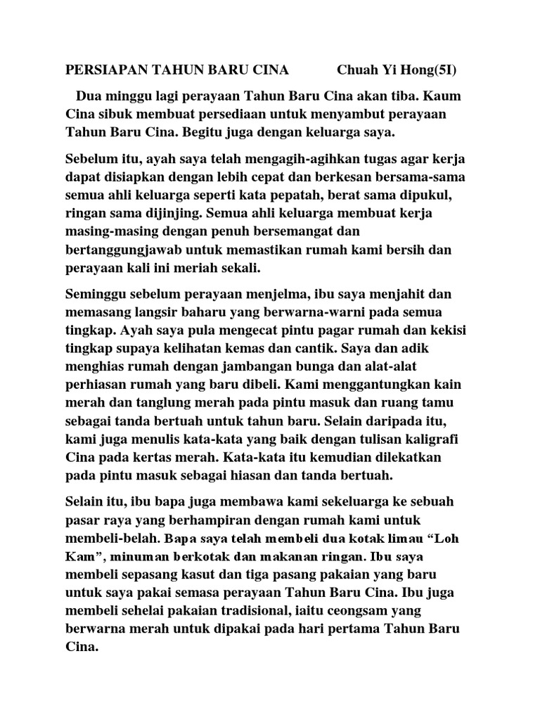Contoh Karangan Bahasa Melayu UPSR Klik. Perayaan Tahun Baru Cina. Karangan Tahun Baru Cina Malaydaraa.