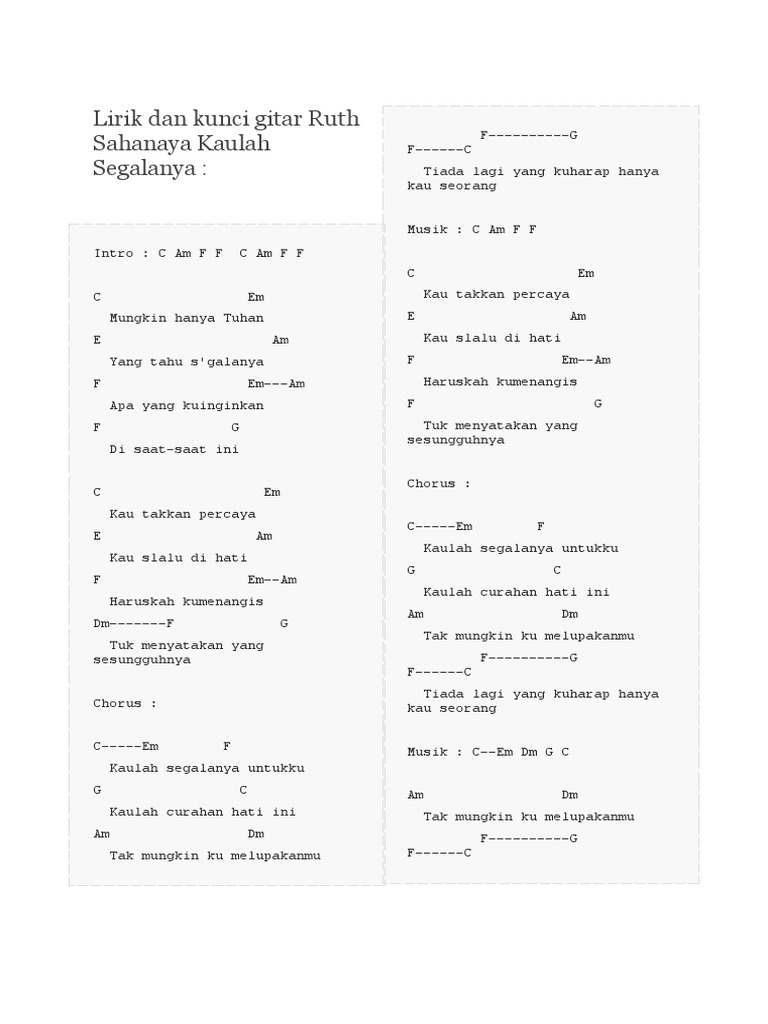 Lirik Dan Kunci Gitar Ruth Sahanaya Kaulah Segalanya Pdf
