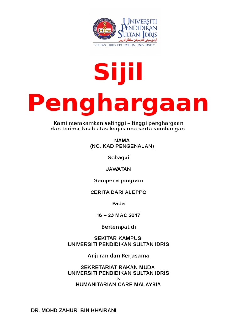 Sijil Penghargaan Sumbangan Pdf